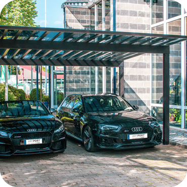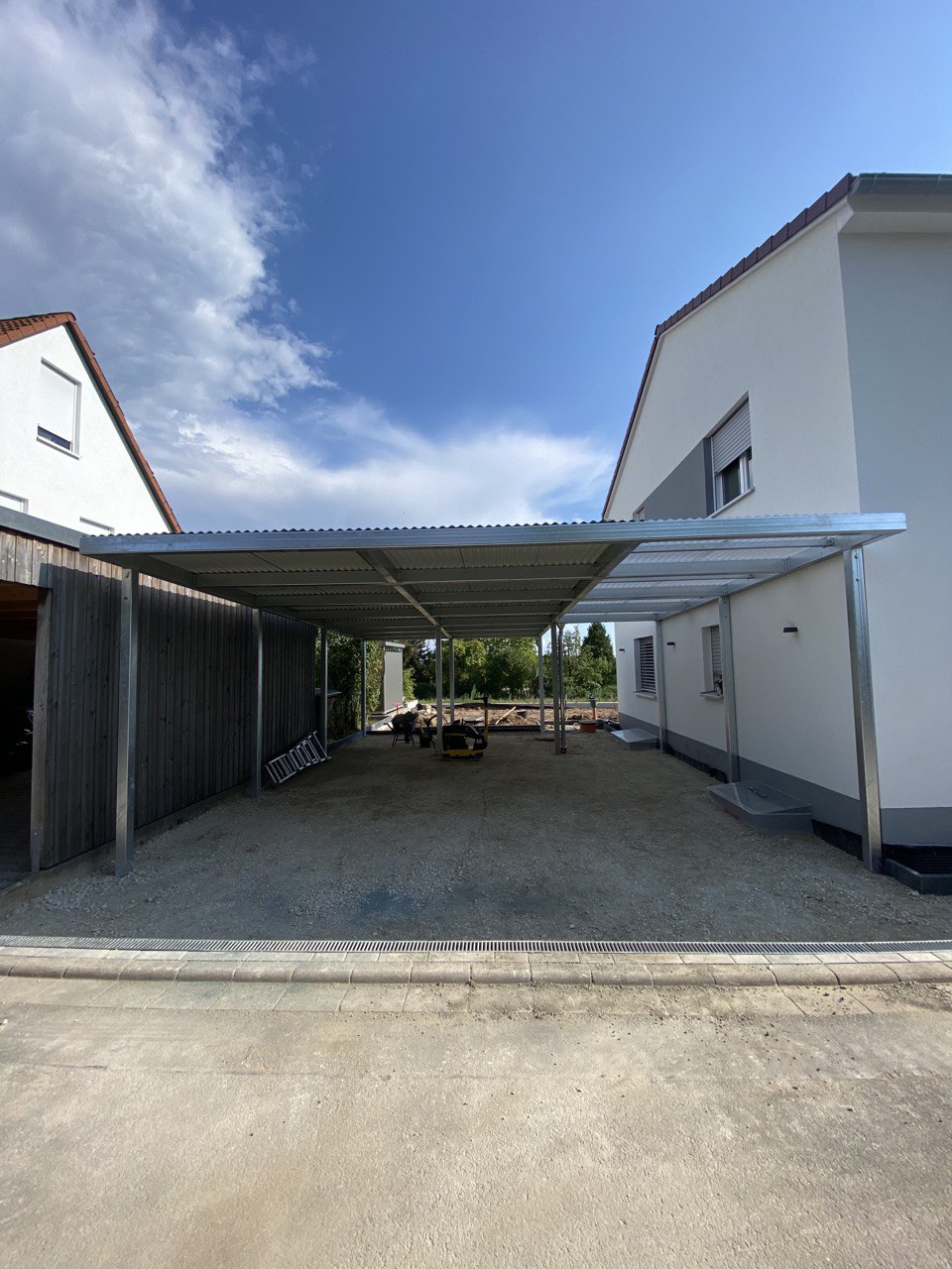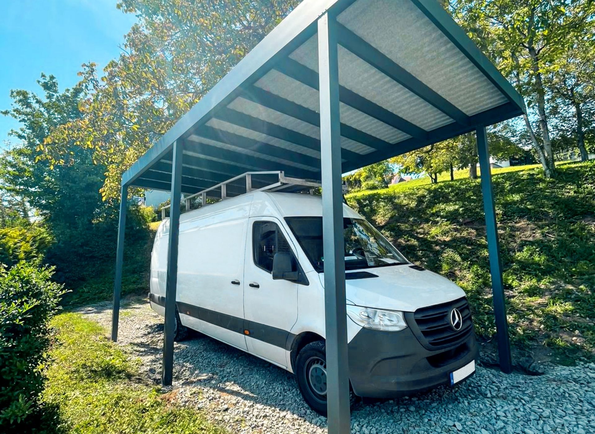 Zum Einen haben wir unsere maßgefertigten Stahlcarports, diese bieten maximale Spannweiten ohne störende Pfosten. 8000mm Einfahrtsbreite ohne Mittelstütze oder 4000mm Höhe für Ihr Wohnmobil, alles ist problemlos machbar.