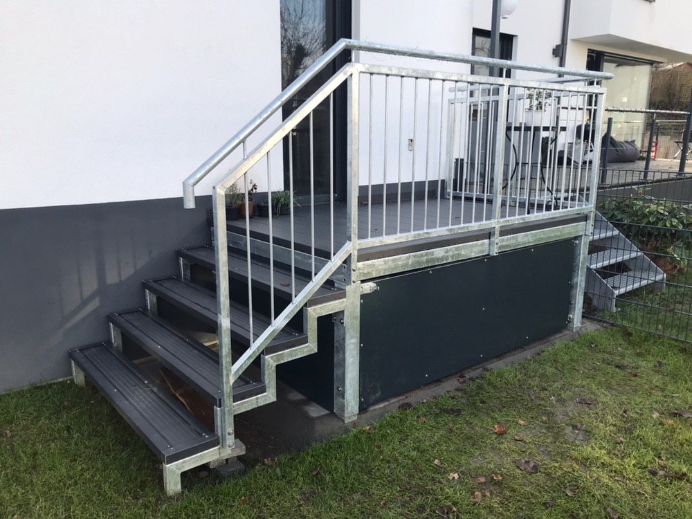 - Die AW-Diele / Allwetterdiele benötigt keine komplizierten Anbauteile, Randwinkel und Abschlussleisten kann Ihnen Ihre Fachfirma einfach selbst nach Ihrem Bedarf anfertigen