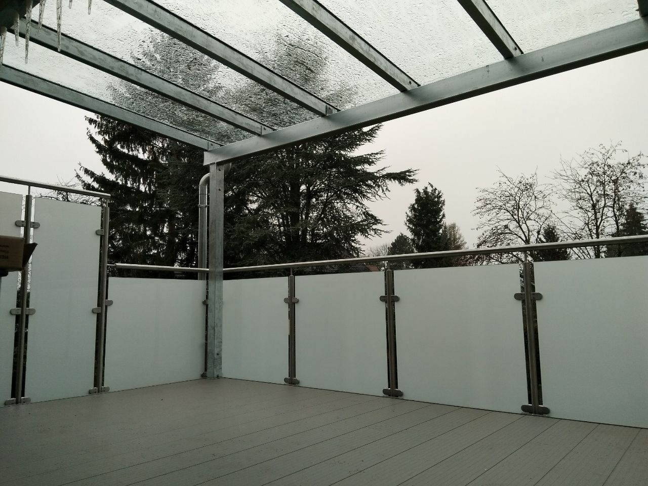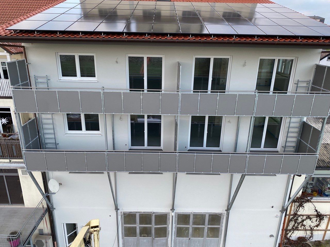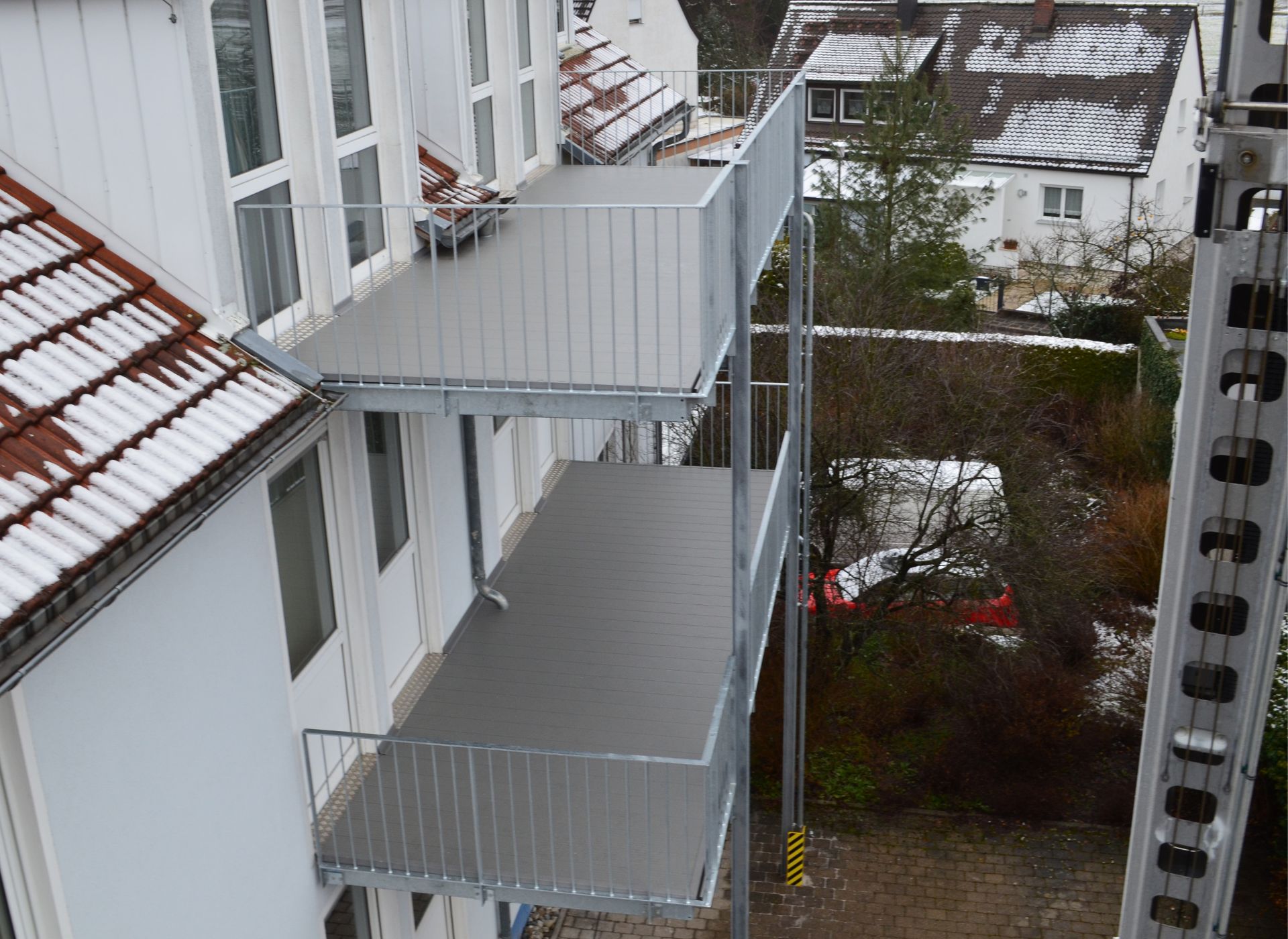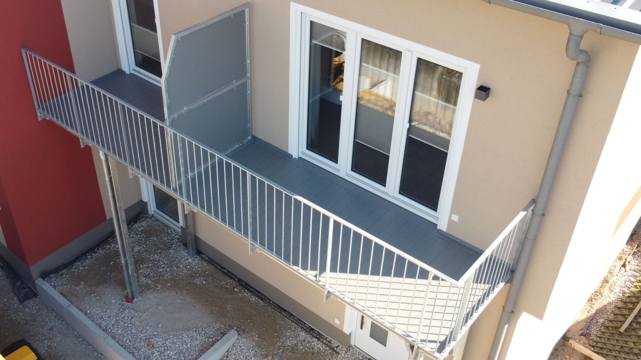 - Bei starkem Regen und Wind, oder wenn sich Schneemassen auf der Balkonfläche sammeln, ergibt sich eine Feuchtigkeitsbelastung für Ihre Fassade und Türen, für welche diese nicht ausgelegt sind.