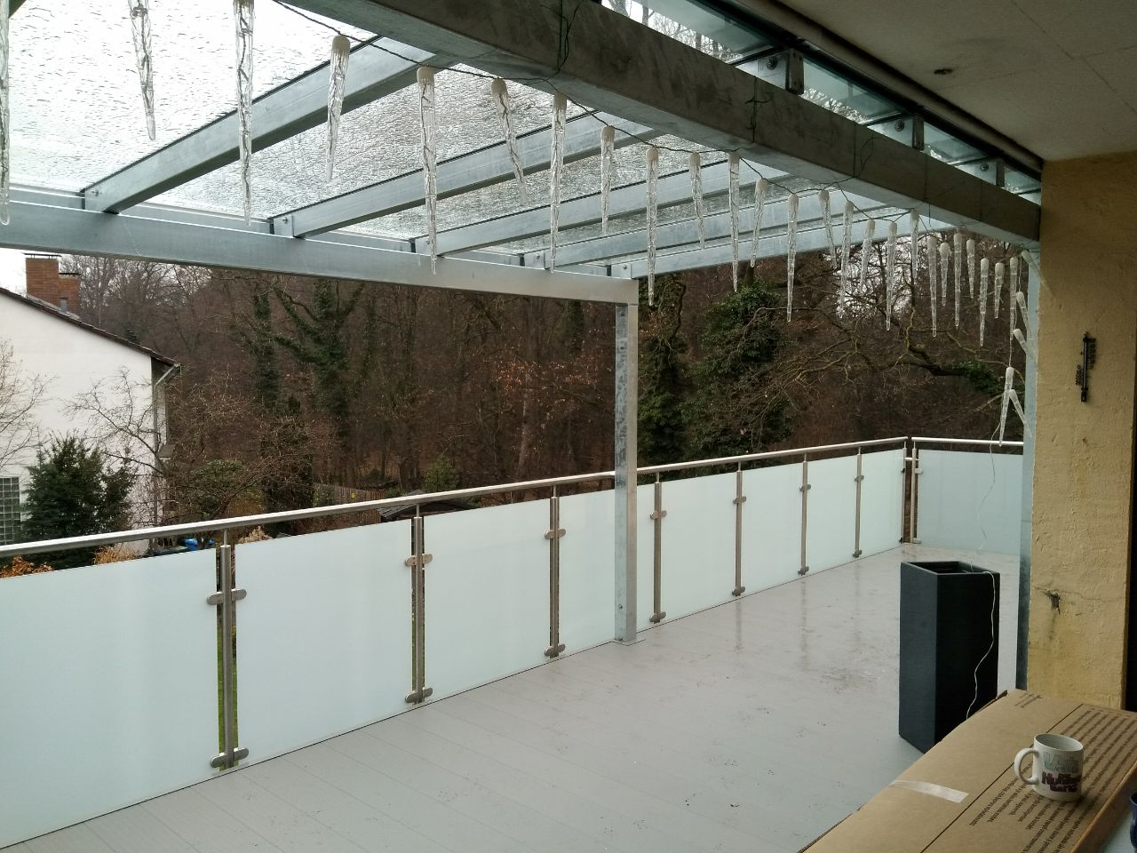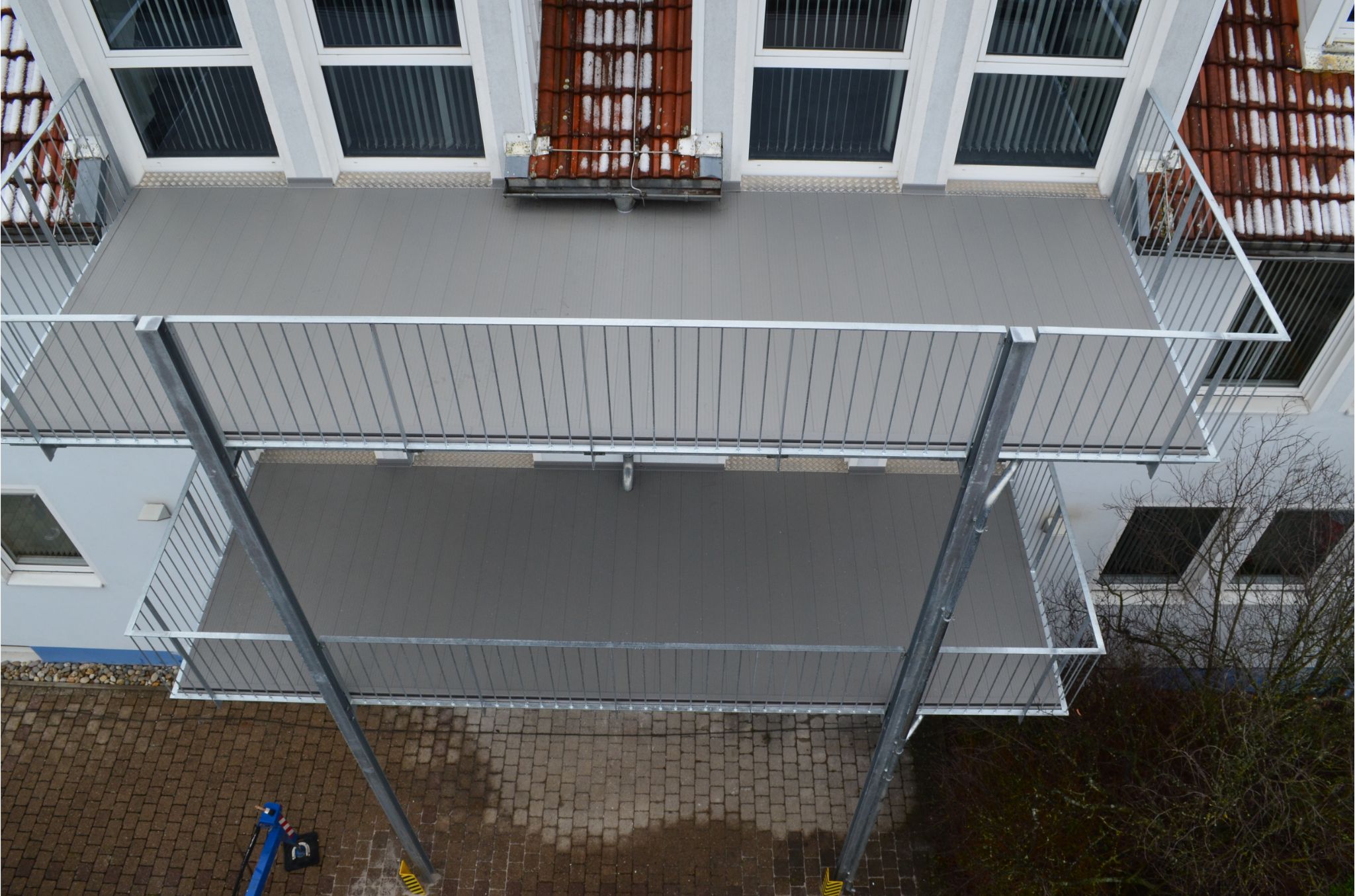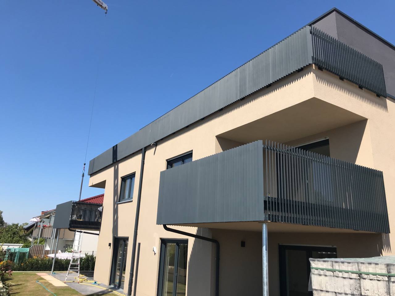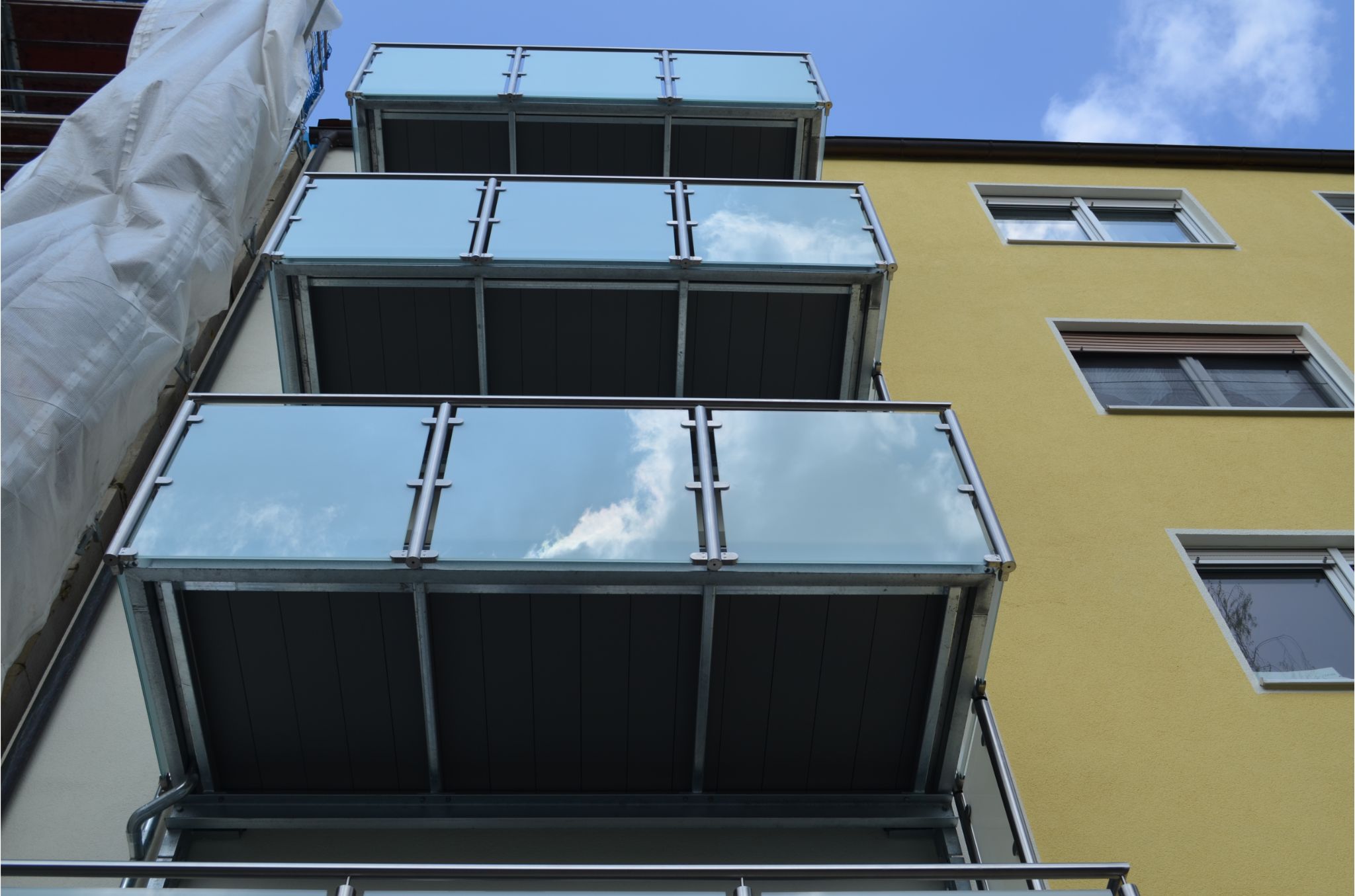 - Bei starkem Regen und Wind, oder wenn sich Schneemassen auf der Balkonfläche sammeln, ergibt sich eine Feuchtigkeitsbelastung für Ihre Fassade und Türen, für welche diese nicht ausgelegt sind.