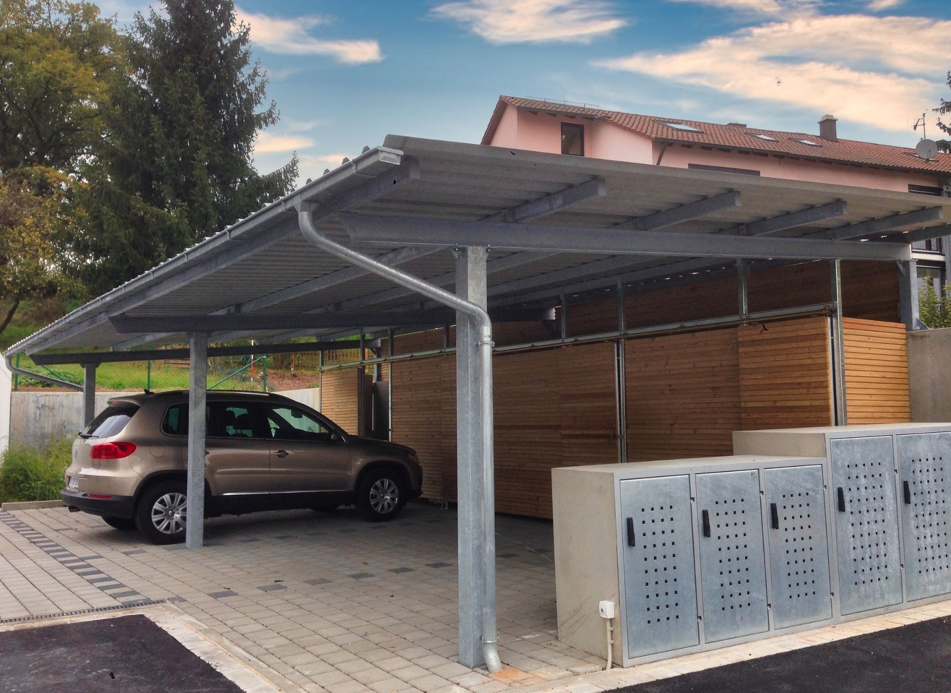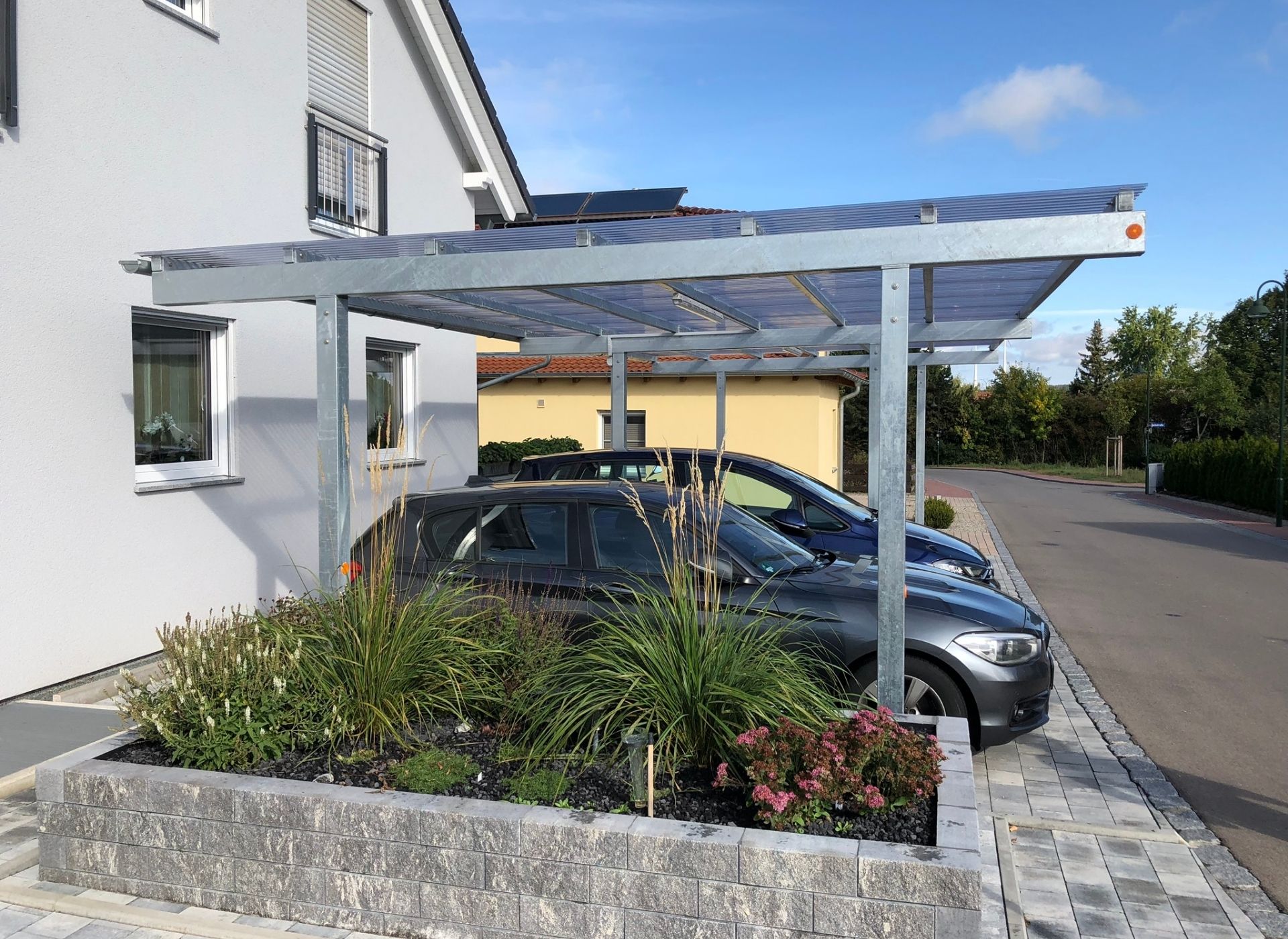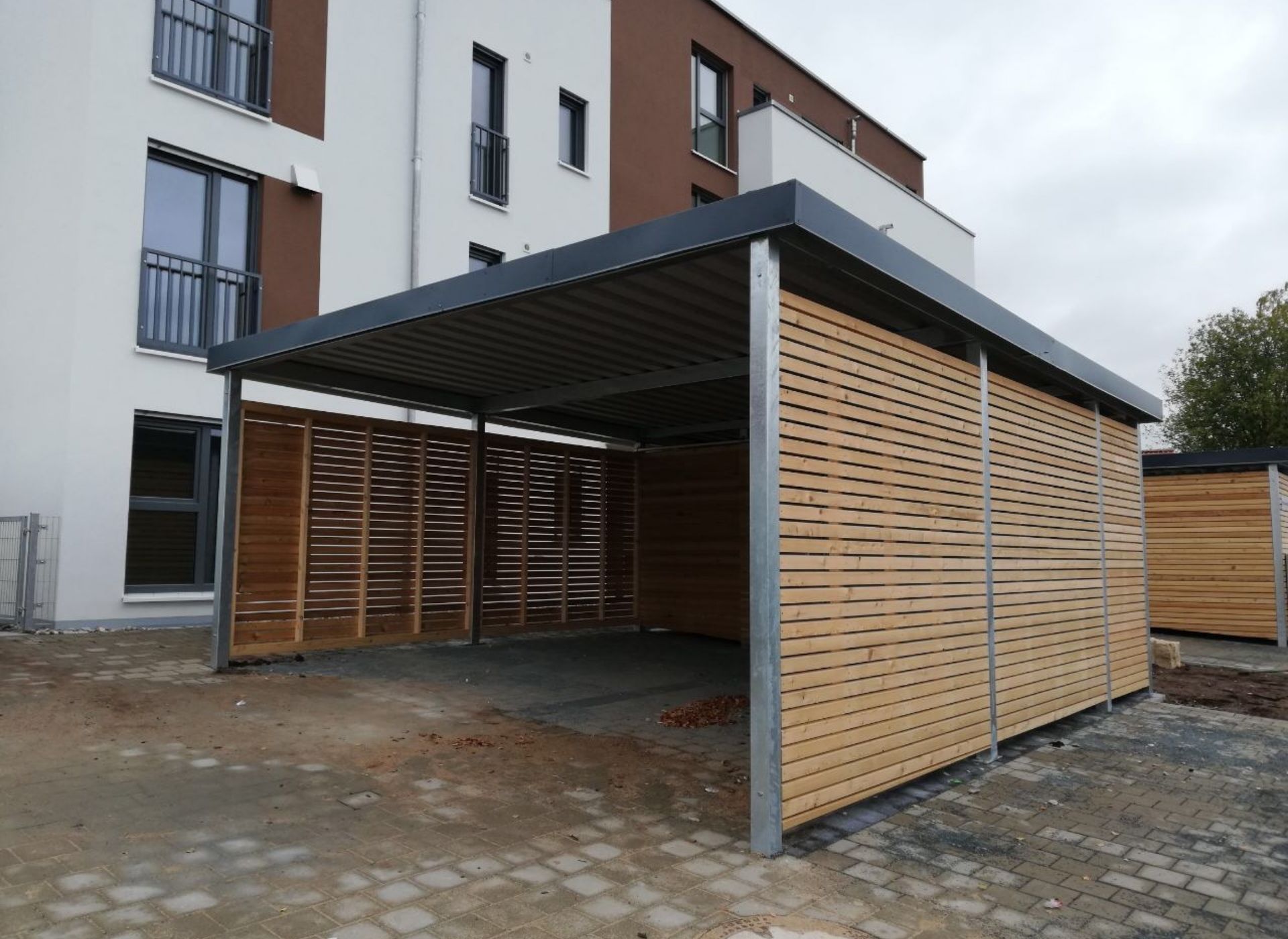 - Carportanlagen für Mehrfamilienhäuser, Bauträger und Firmenparkplätze.