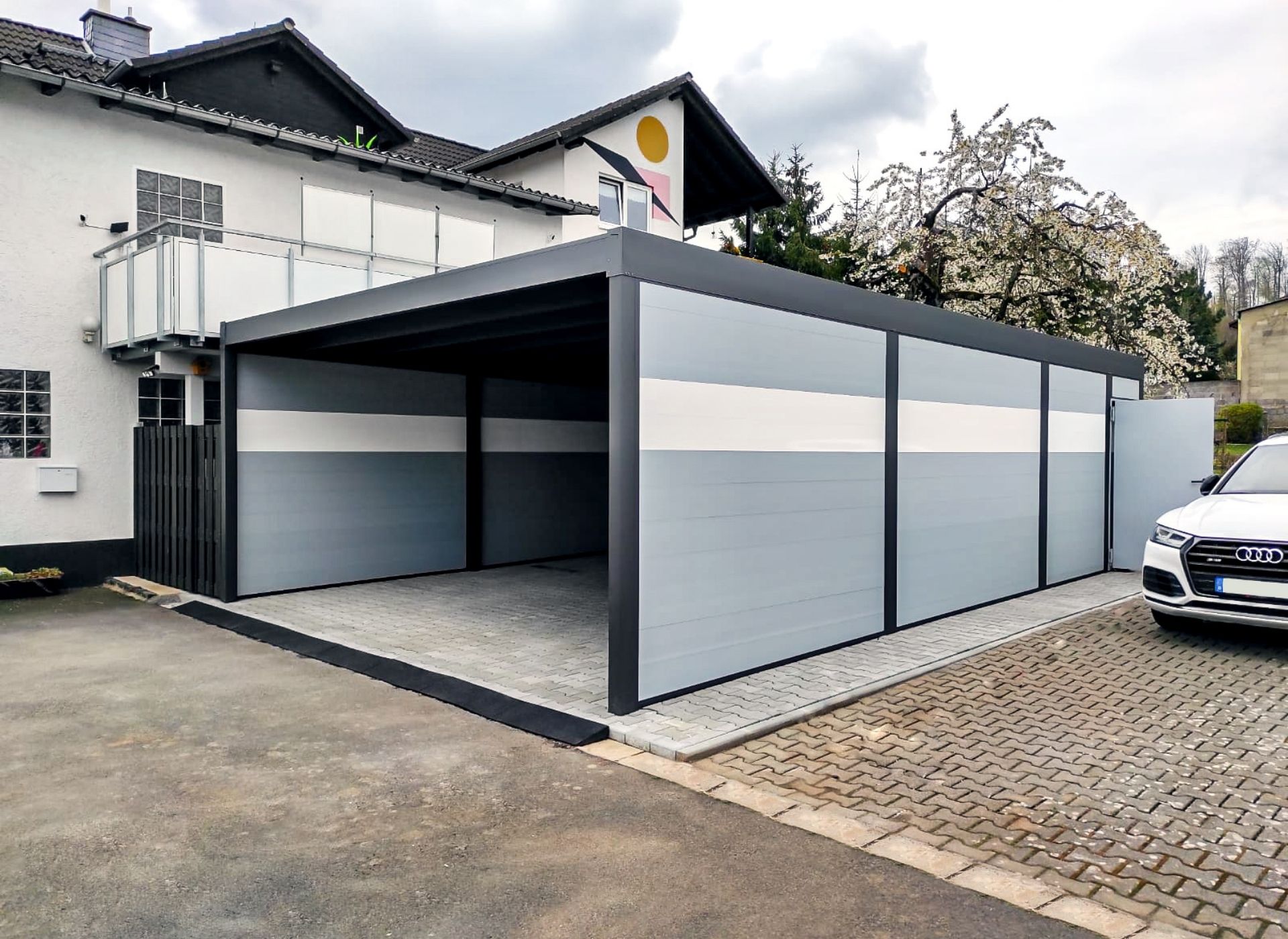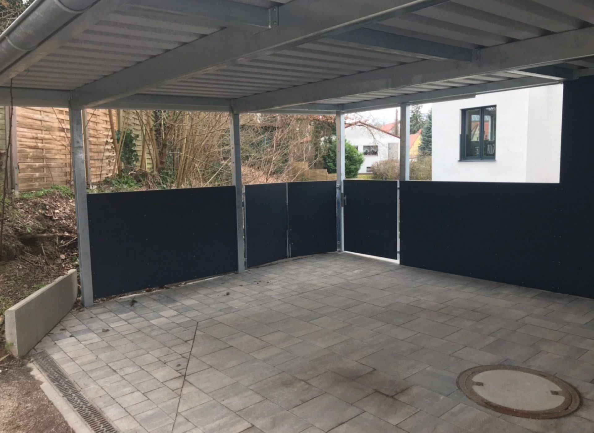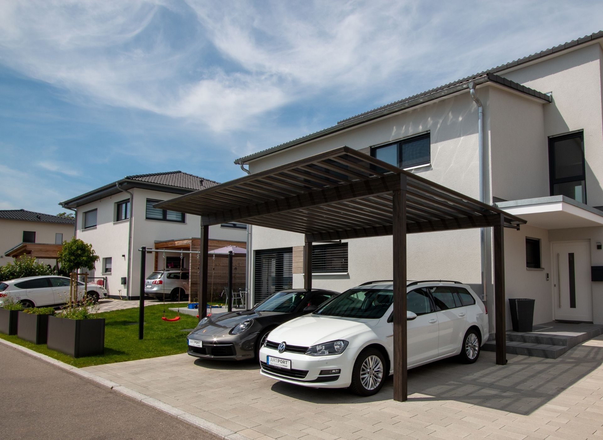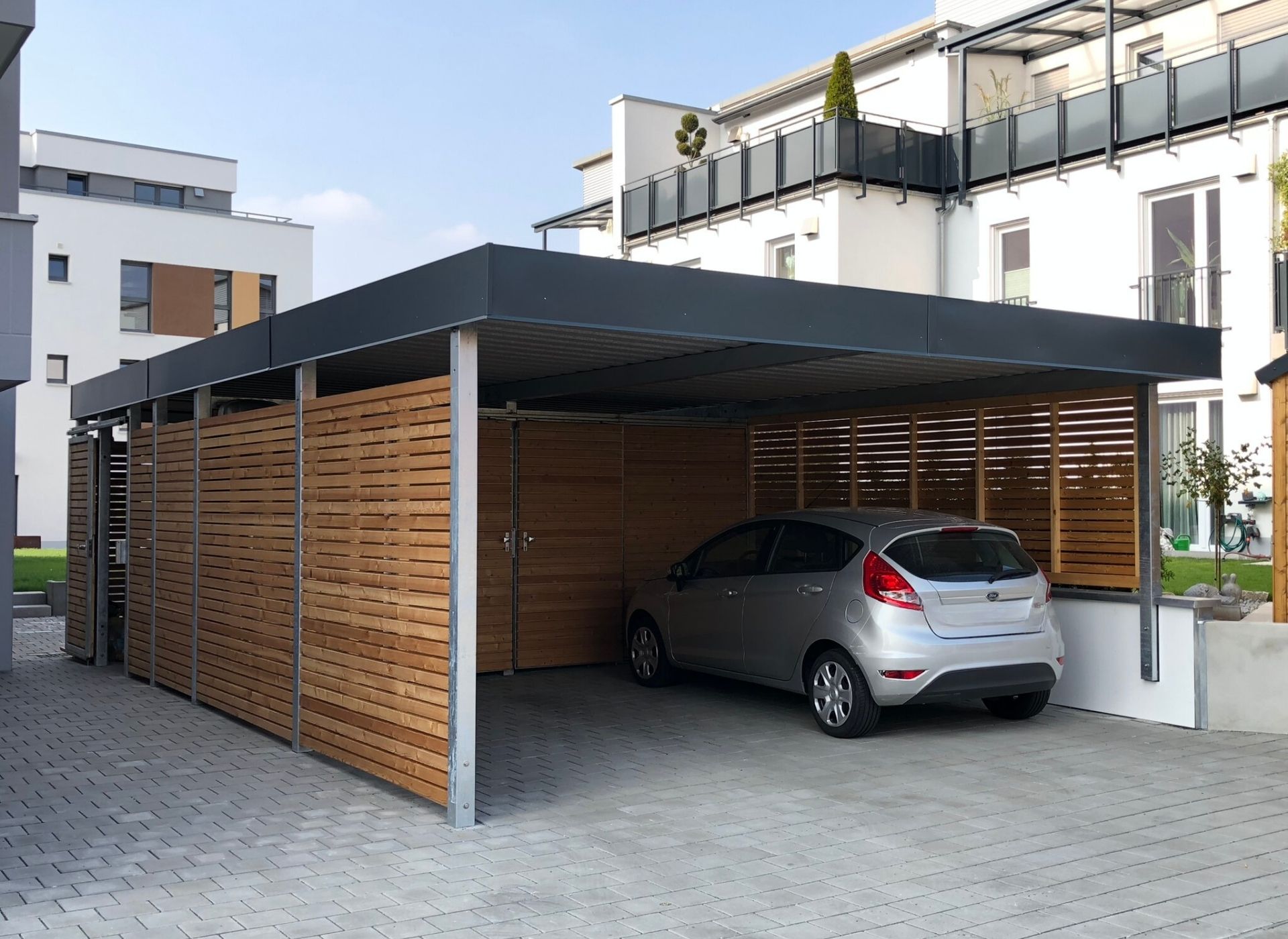 - Carportanlagen für Mehrfamilienhäuser, Bauträger und Firmenparkplätze.