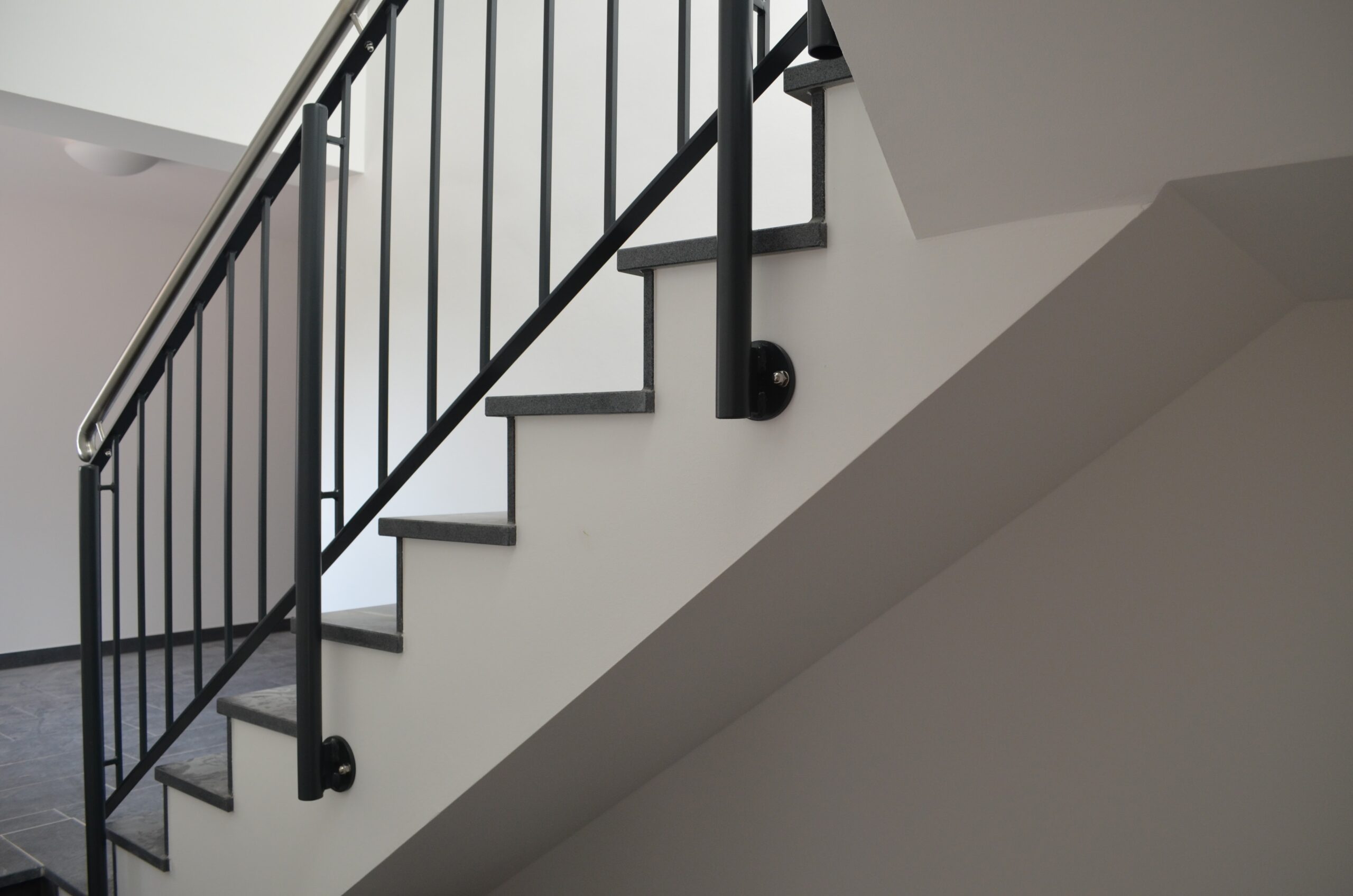 Diese Variante empfehlen wir auf Grund des Verzicht auf die Feuerverzinkung nur bei Innengeländern. Geländer komplett aus Vollmaterial wie Flachstahlrahmen und Stabfüllung können in einem Pulverbeschichtungsverfahren mittels Grundierung und Endfarbe auch bedingt im Außenbereich eingesetzt werden.