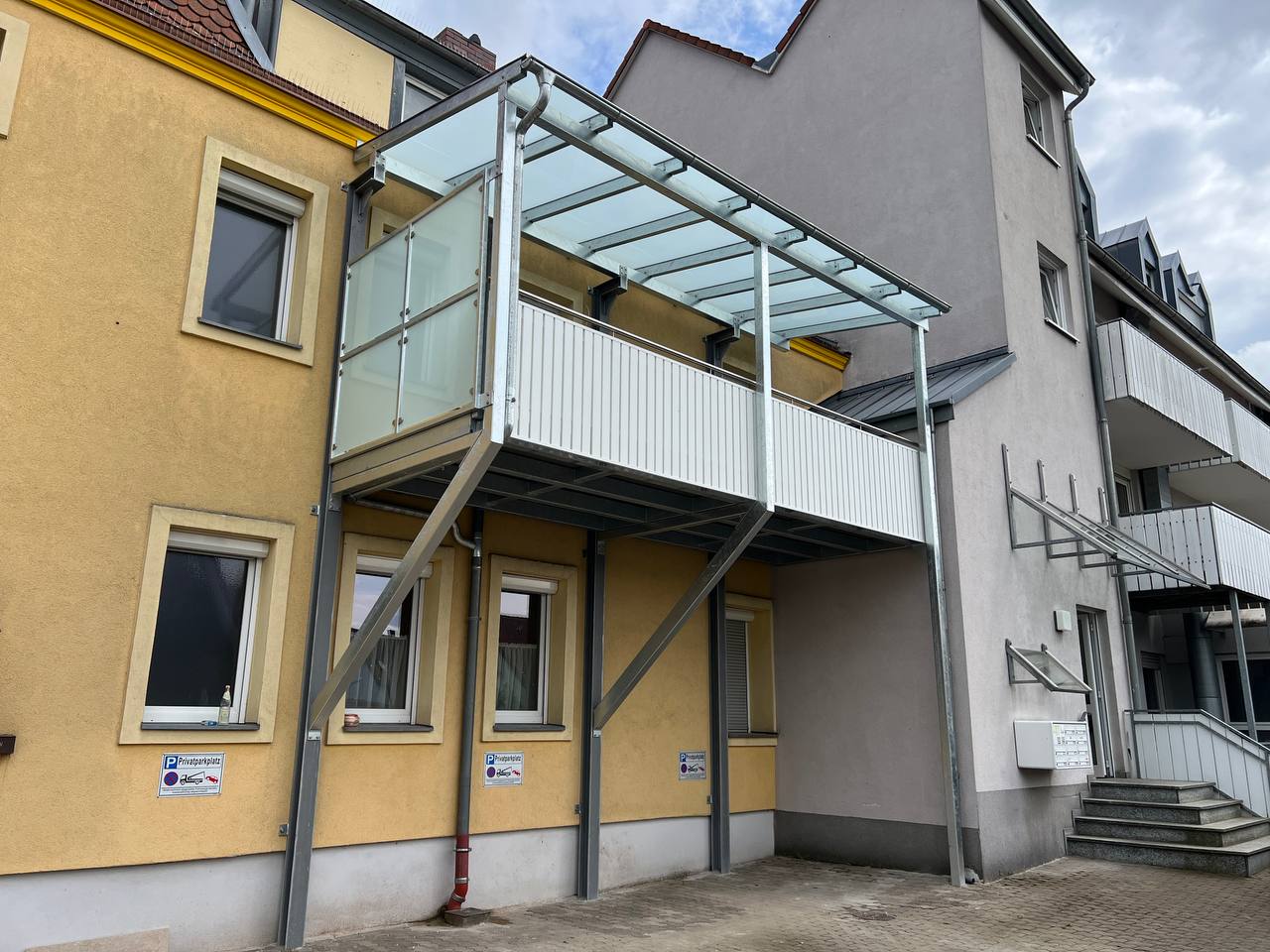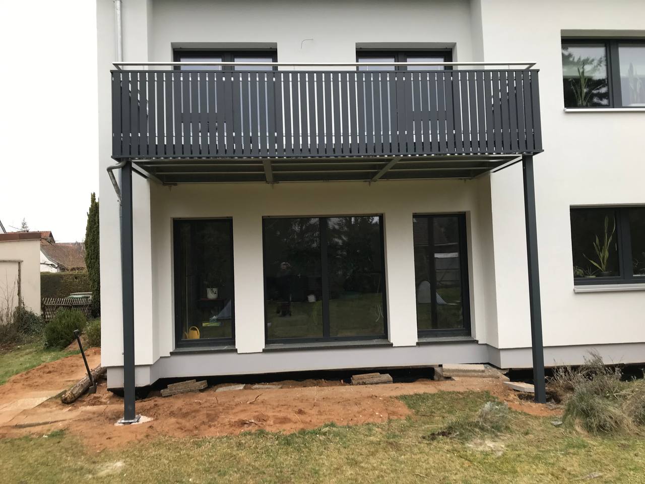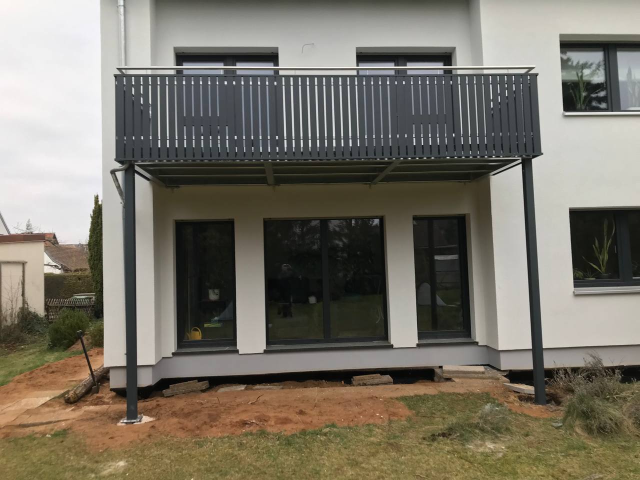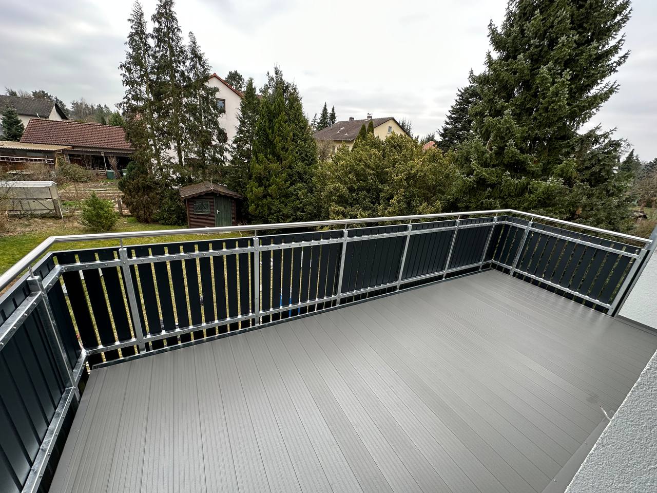 Das Geländer besteht aus einem feuerverzinkten (wahlweise pulverbeschichteten) Grundrahmen auf welchem senkrecht oder waagerecht Kunststoffprofile in RAL oder DB befestigt sind.