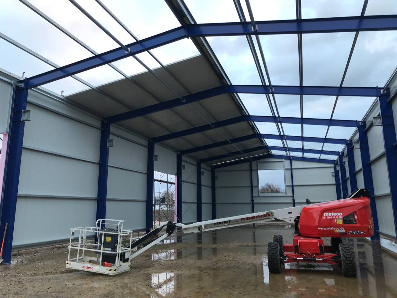 • Wir fertigen unseren Hallen selbst in unserer Stahlbauproduktion in Langenzenn.