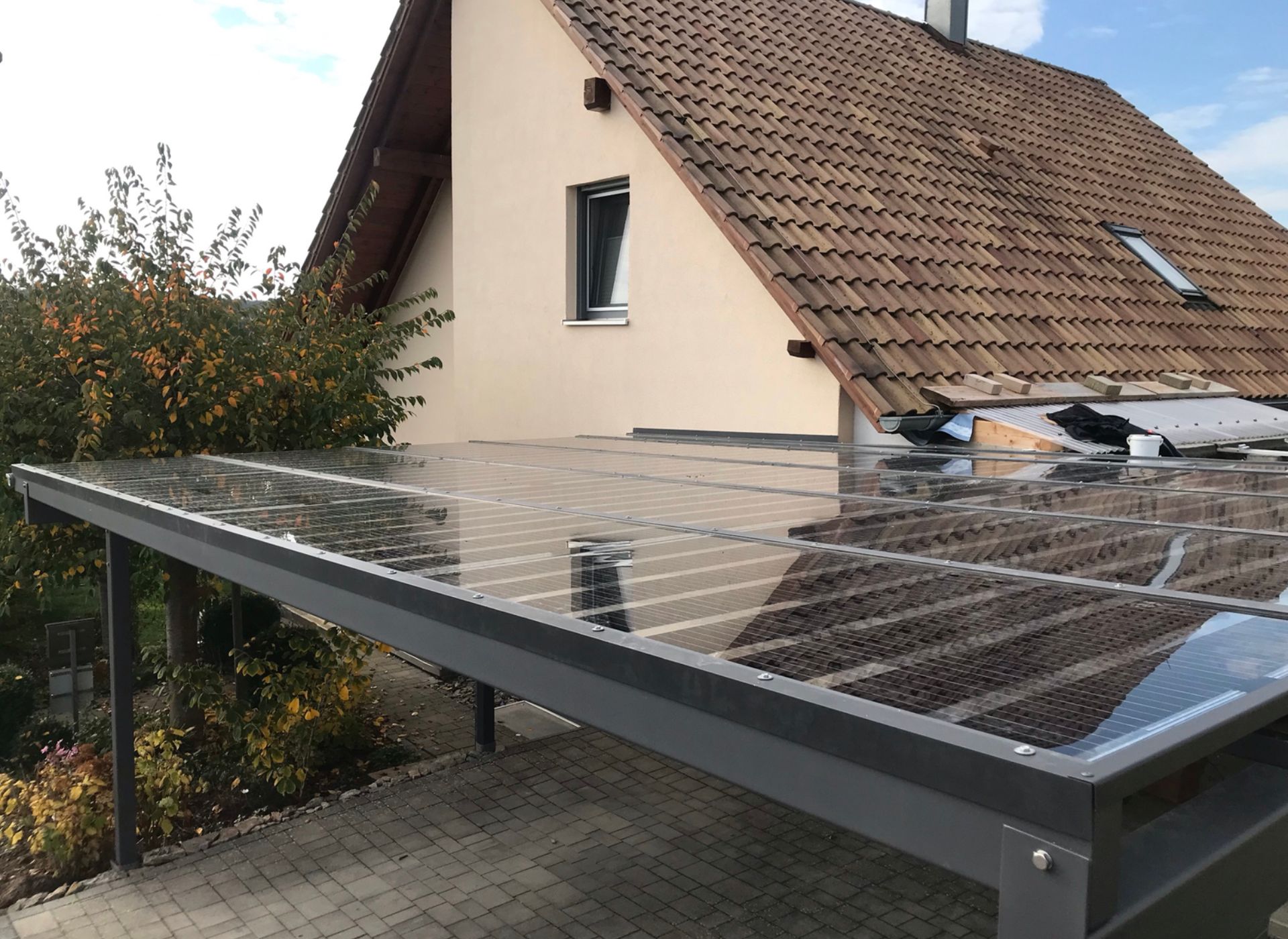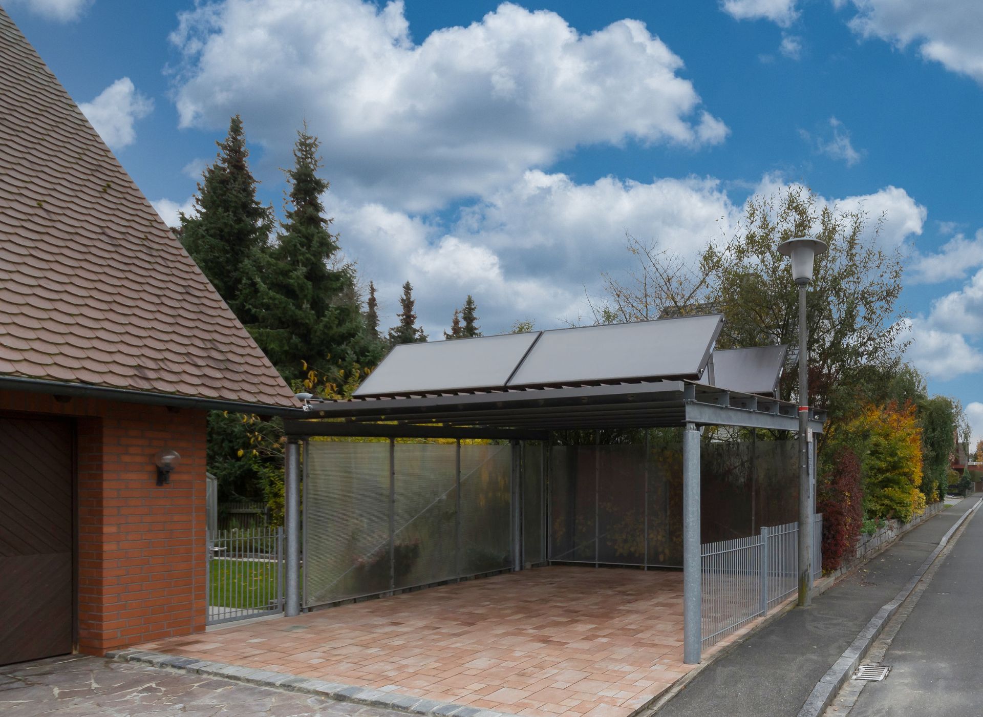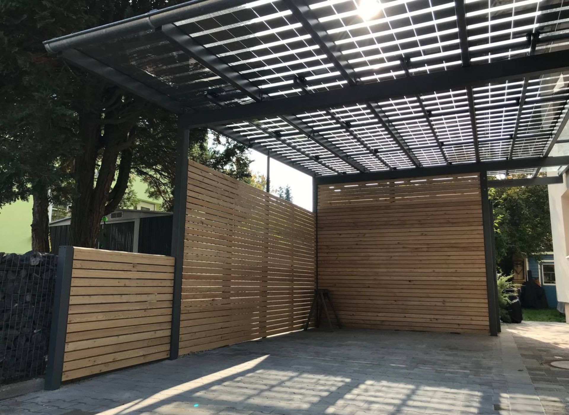 - Unsere Solarports können auch als schickes Terrassendach konzipiert werden.