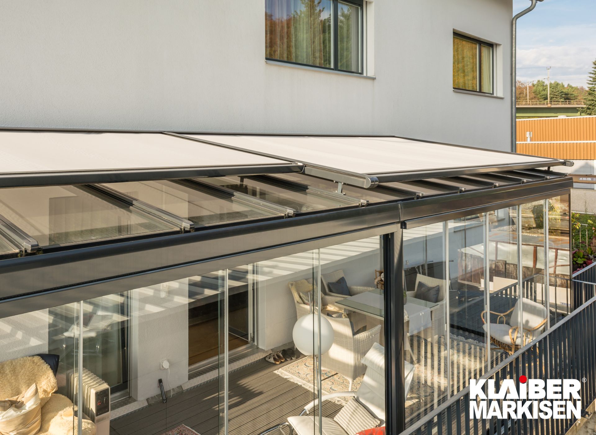 - Aufdach- oder auch Überglasmarkisen halten die Hitze schon vor dem Glas ab und sorgen damit für perfektes Klima in Ihrem Glasparadies.