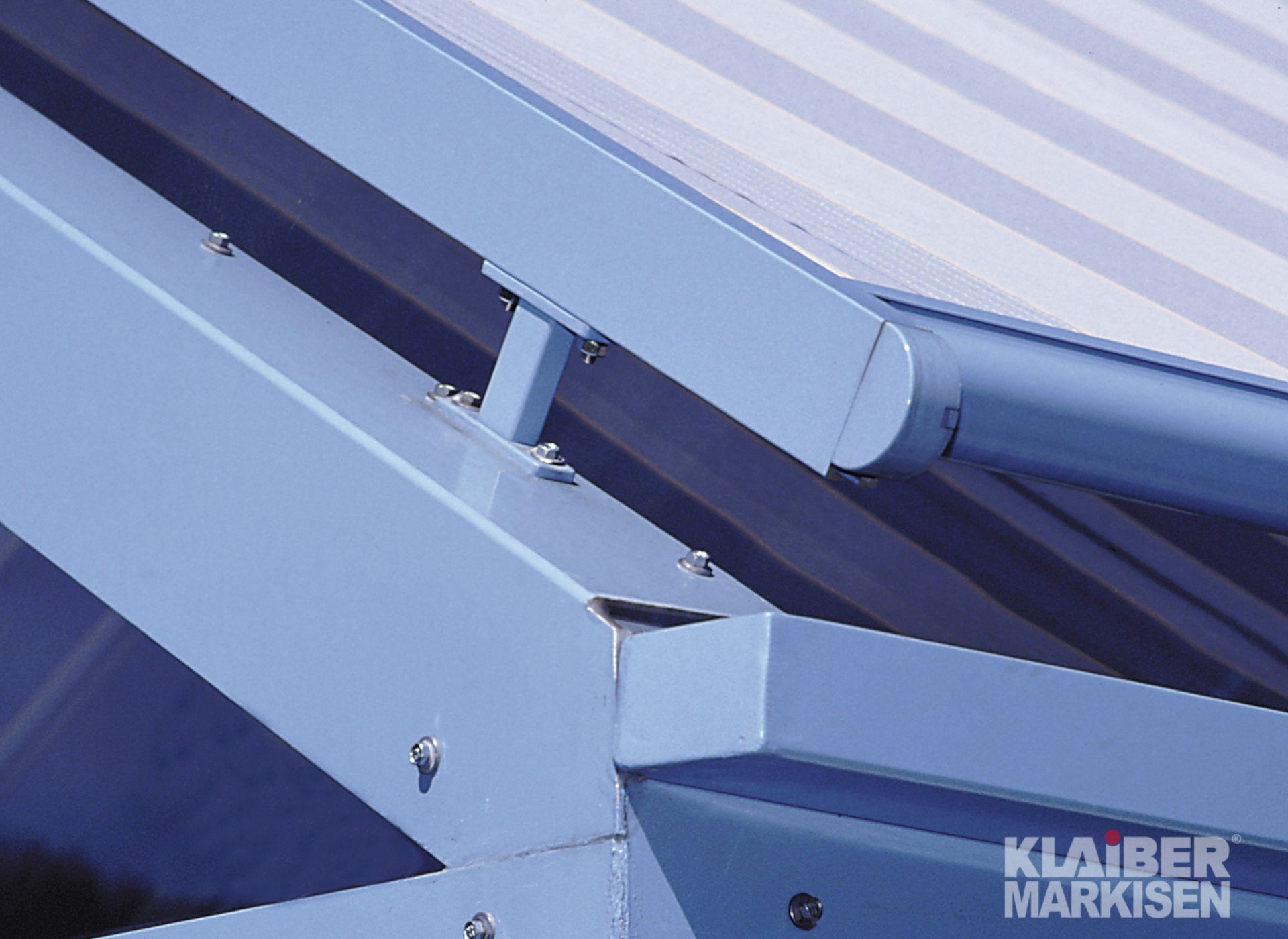 Die unterschiedlichen Befestigungsvarianten, entweder als aufgesetzte Montage mit Befestigungshalter oder direkt integriert mit Klemmkonsolen und Leistenprofil, ermöglichen jede Form von Glasdächern oder Wintergärten zu beschatten.