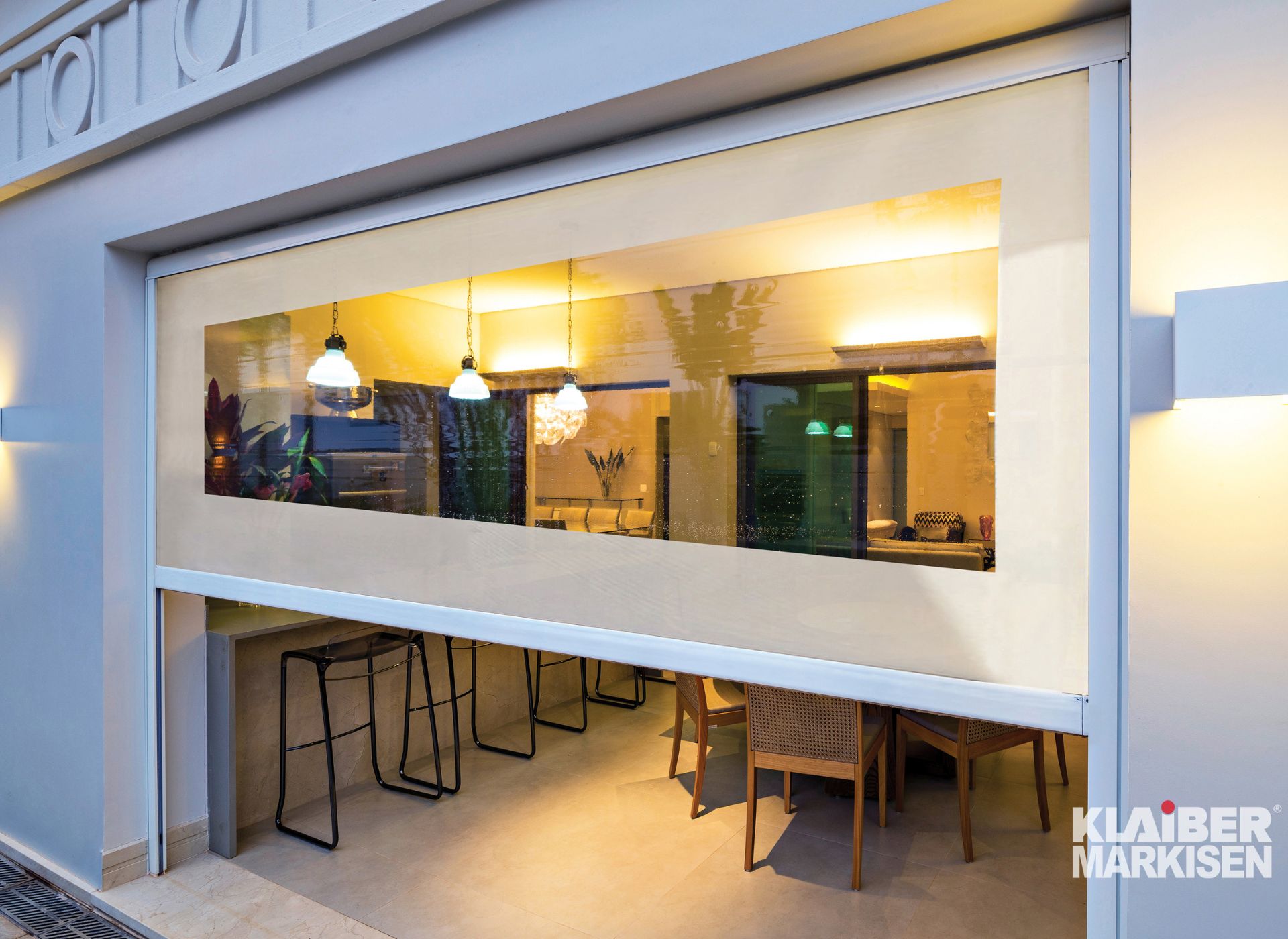 Dank der hochwertigen durchsichtigen PVC-Folie bleibt die Sicht frei. Das natürliche Tageslicht lässt den Aufenthaltsraum heller und freundlicher wirken und sorgt für mehr Behaglichkeit. Zusätzlich ist die VENTOSOL-CRISTAL VC5300 eine interessante Alternative zu vertikalen Verglasungslösungen.