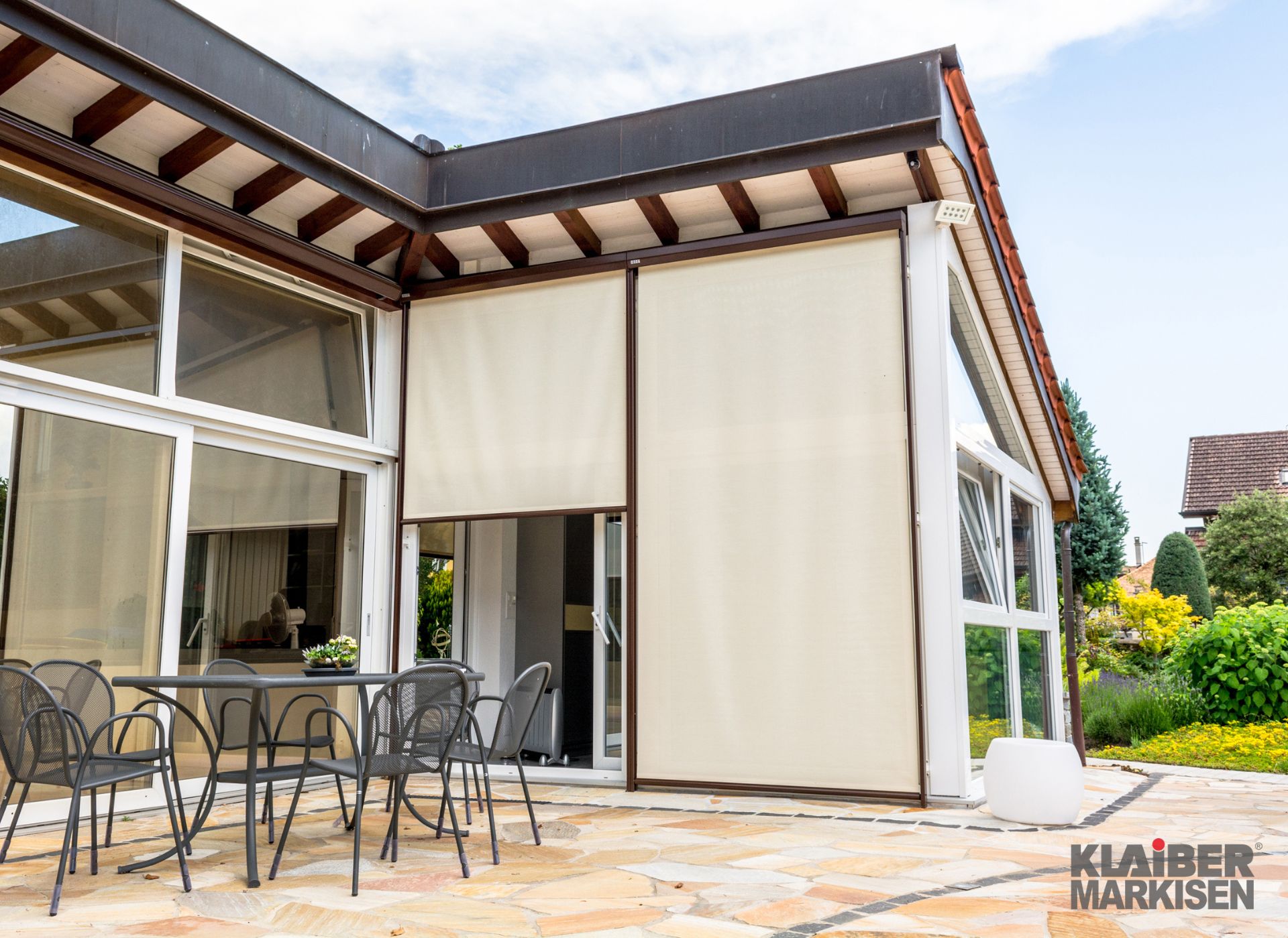 • Senkrechte Front- und Seitenbeschattung als Erweiterungsprodukt für bestehende Terrassenlösungen.