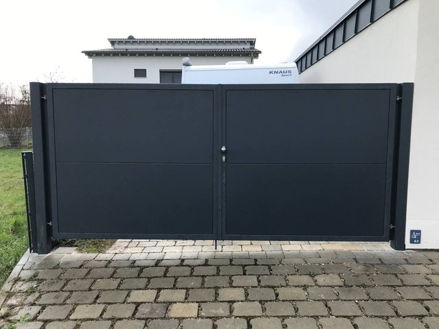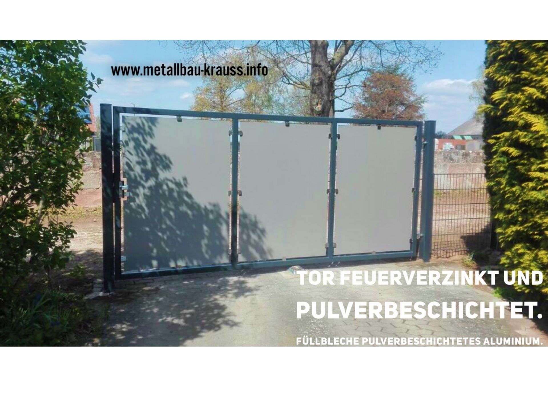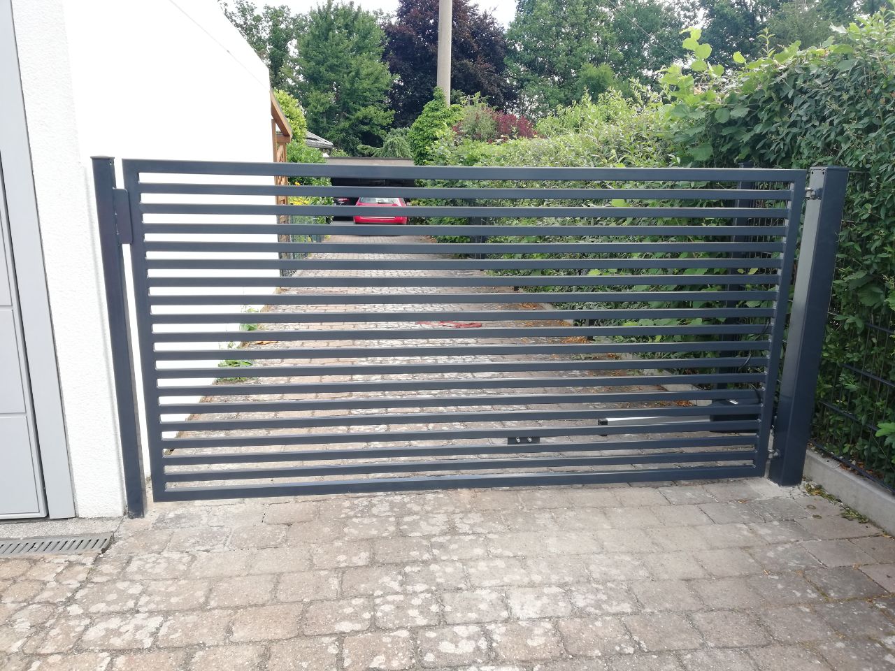 Flügeltore, Schiebetore mit Bodenschiene oder als freitragendes Tor, können wir Ihnen inkl. Fundamentarbeiten anfertigen und liefern.